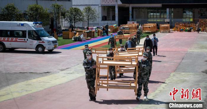 救援人员正在帮助仙峰幼儿园搬家。 刘忠俊 摄