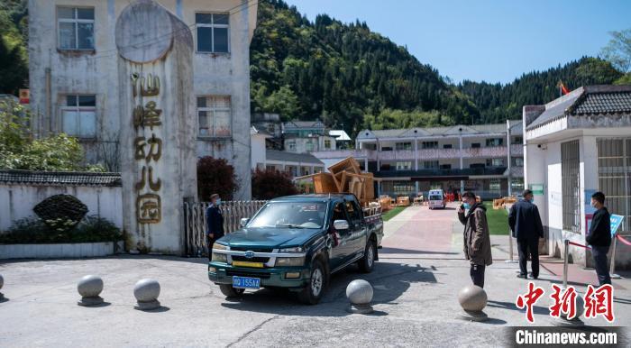 地震中受损严重的仙峰幼儿园正在转移物品。 刘忠俊 摄