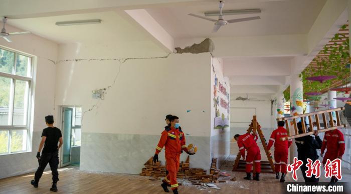 4月7日,中新网记者深入地震震中仙峰苗族乡合庆、居坪村等多个村社,发现震区房屋主要为震后出现裂缝的情况较多,个别老旧房屋受损较重。在地震受损较严重的仙峰幼儿园,记者看到大楼多根柱子出现险情,一至三层墙体许多有裂缝,地面也有掉落的水泥墙体等。“幼儿园主楼在地震中受损较严重,无法保证安全,已停止使用,幼儿园师生全部转移。”幼儿园内忙着搬运办公物品的一名老师称,消防、应急和民兵都来帮忙转运,很快将到临时点上课。“家中房子还好,没有受到什么影响。暂时将孩子被子等物品取回家,等稳定了再送孩子来幼儿园。”幼儿园大门口,提着两口袋物品带着孩子回家的仙峰苗族乡群鱼四组村民杨必秀称。