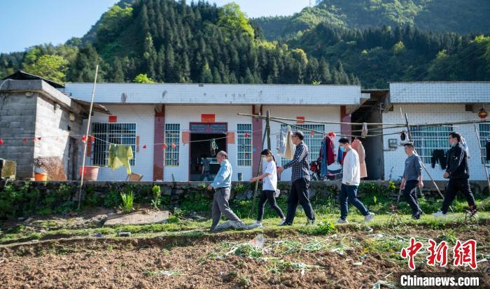 地震局调查人员深入震区各乡村走访调查房屋受损等情况。 刘忠俊 摄