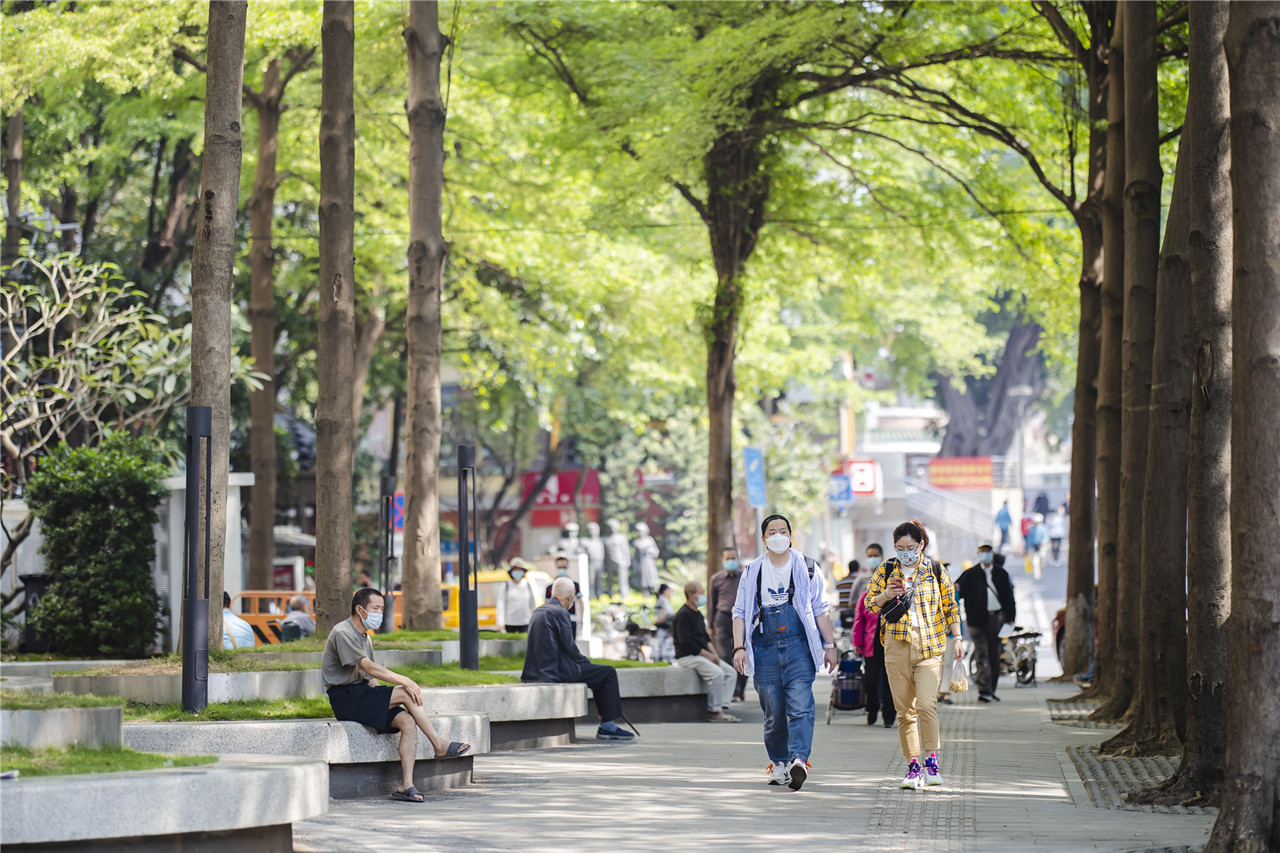 越秀区盐运西社区口袋公园在建设前广泛征求了居民的意见建议,充分考虑到居民对社区历史记忆的情怀,这里选择的都是乡土树种。一年四季既能遮阴,又有花香。据了解,这里原是一块烂尾地,后经过社区微改造,变成居民喜闻乐见的休闲地。