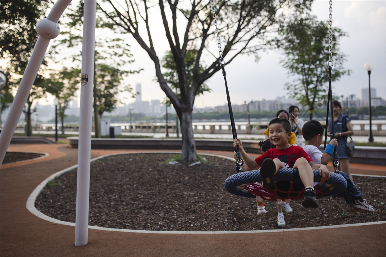 琶洲塔公园内,小朋友们在玩耍。