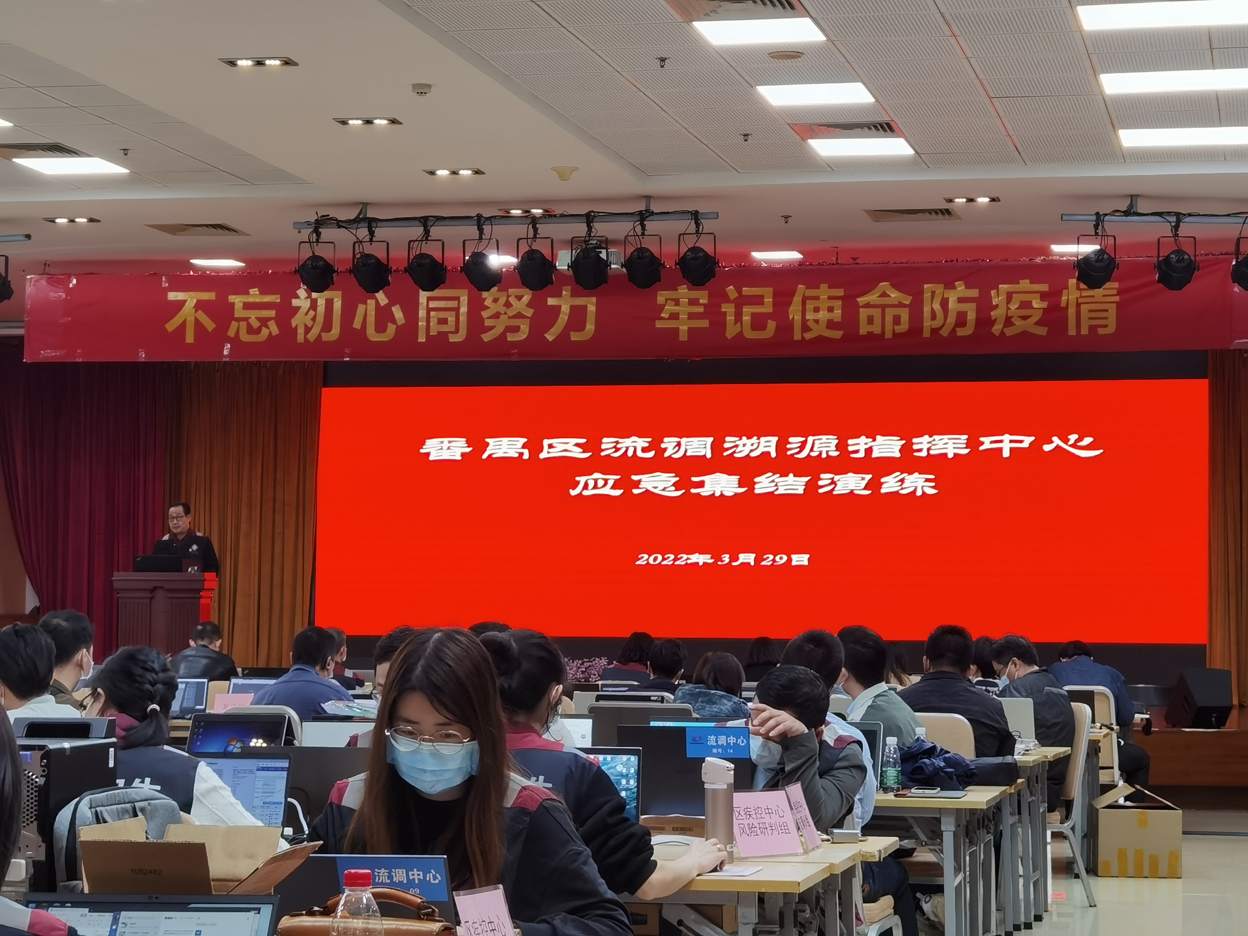 日前,广州市番禺区组织开展番禺区流调溯源指挥中心应急集结演练,区卫健局、区公安局、区政数局、各镇街防控办等相关部门分管负责人及区疾控中心全体流调队伍参加。