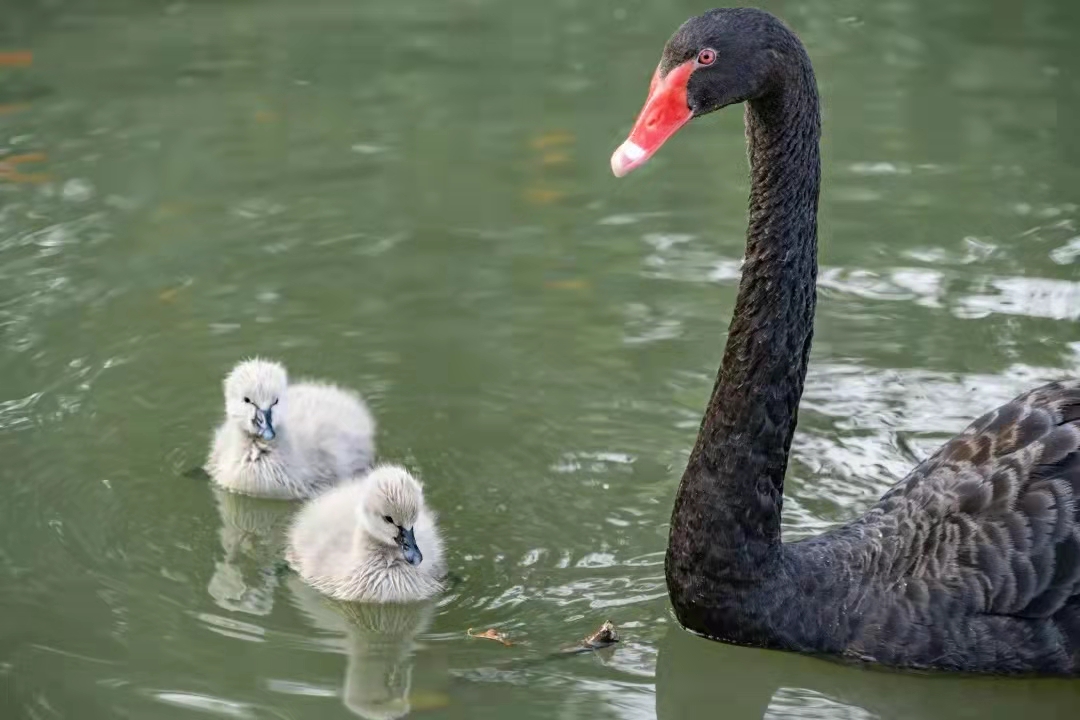 今年1月,南国商学院迎来了4只自然孵化的黑天鹅宝宝。此前,为了让黑天鹅夫妇安心孵育,学校工作人员将它们单独安置在实验楼附近池塘生活,并设立挡车桩和生态围栏避免车辆和人的打扰。