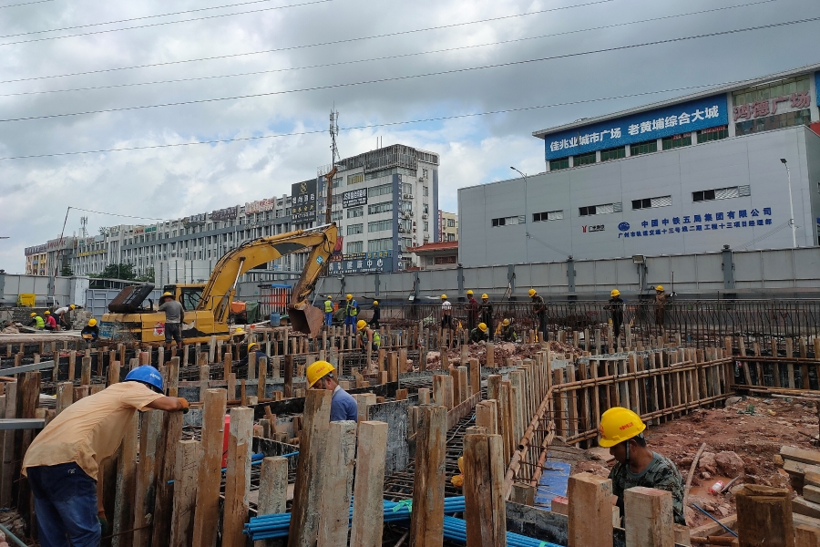 据悉,十三号线二期珠村站位于天河区中山大道与护林路交叉路口西侧,车站全长223.2米,为地下明、暗挖分离岛式车站。其中,车站主体为地下三层结构,采用明挖法施工,左线站台层隧道采用暗挖法施工。