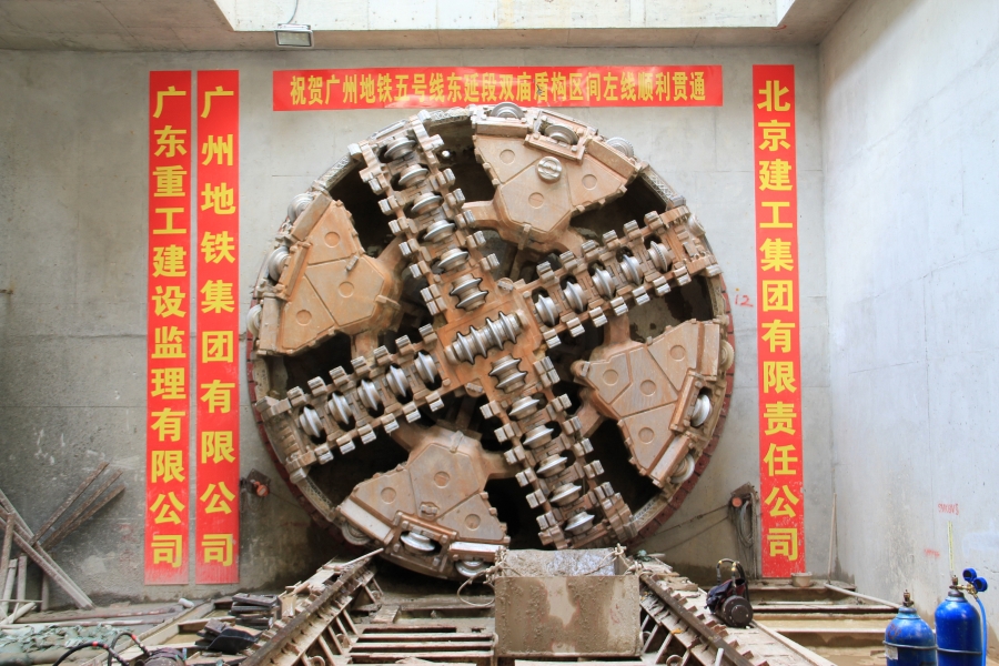 近日,广州地铁十三号线二期珠村站左线隧道4号导洞顺利实现贯通,标志着该车站正线暗挖隧道开挖施工全部完成,全面转入二次衬砌阶段。同时,肩负着五号线东延段双岗至庙头路区间(以下简称“双庙区间”)隧道左线施工任务的盾构机成功抵达双岗站接收端,标志着该线路最长的盾构区间隧道顺利实现双线贯通。
