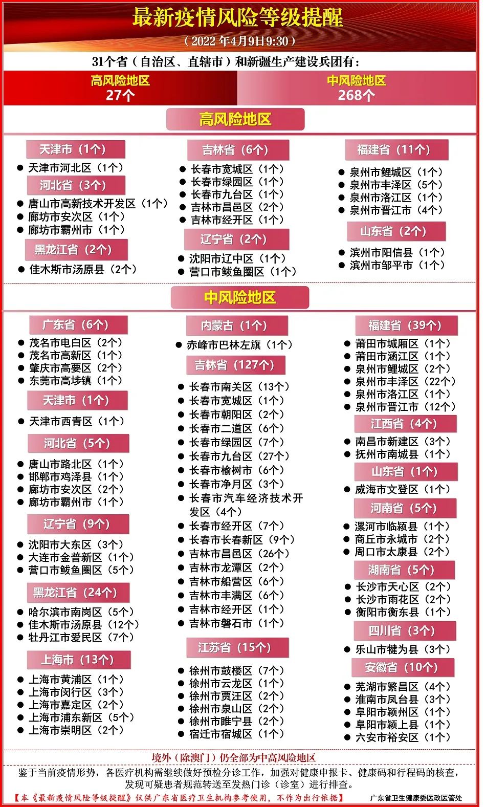 最新疫情风险等级提醒(截至时间:2022-04-09 09:30)
