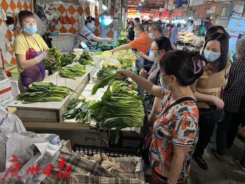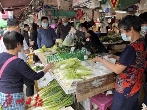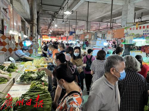 2022年4月9日下午,广州市海珠区沙园市场供应充裕,市民有序采购。