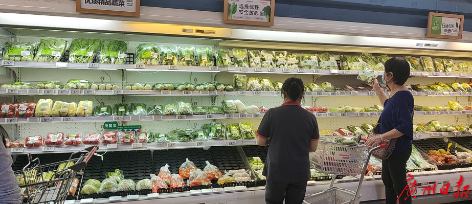 记者现场了解到,当前位于海珠客村的沃尔玛门店货物较为充足,水果蔬菜都有足够的供应量,市民正在有序采购。