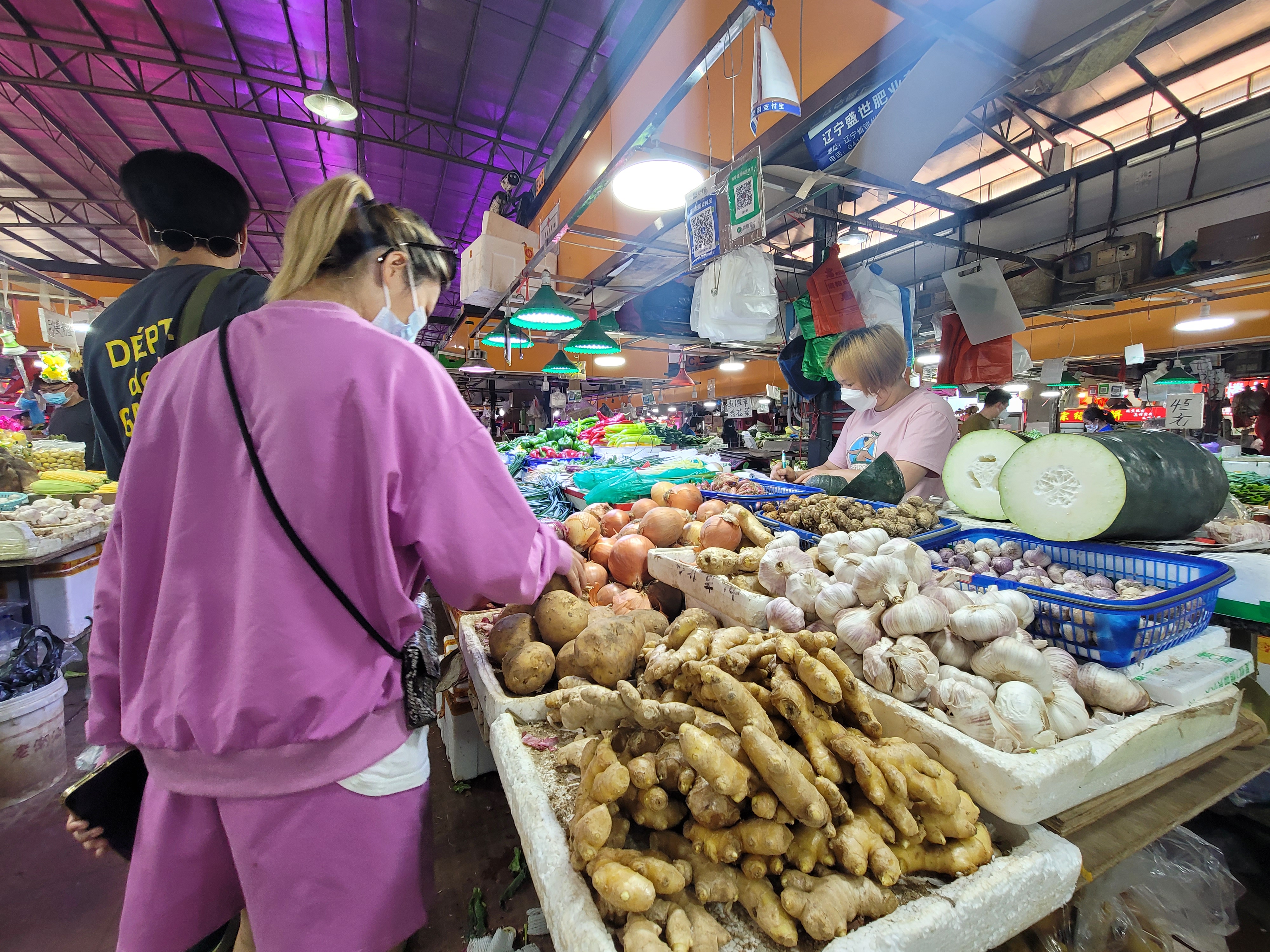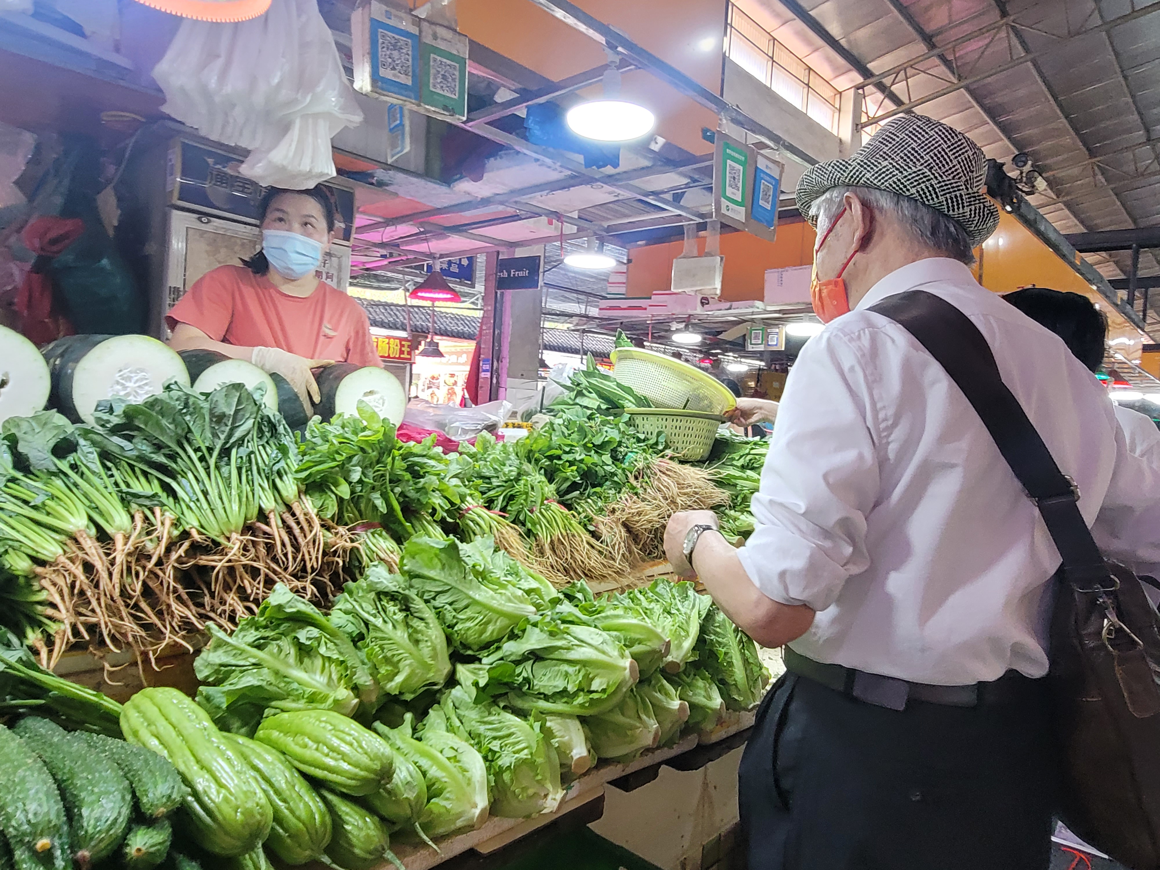 农贸市场:有序扫码进场,肉菜供应充足