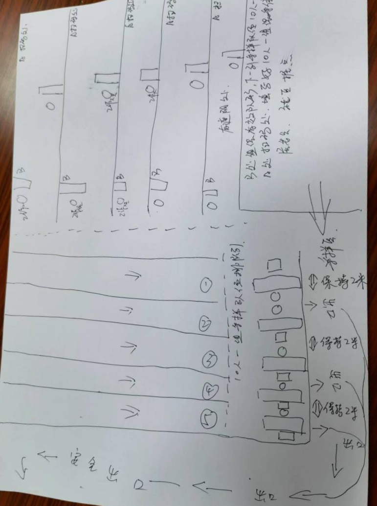 在社区采样点,为了降低人员流动中交叉感染的风险,让核酸采集工作有序高效地进行,夏乐护士长和“大白”们在社区工作人员的支持下,根据场地的配置条件和居民流动线路,现场手绘图纸,对核酸采集流程和市民排队的线路图进行优化调整,从而提升了核酸采集的安全性和工作效率。