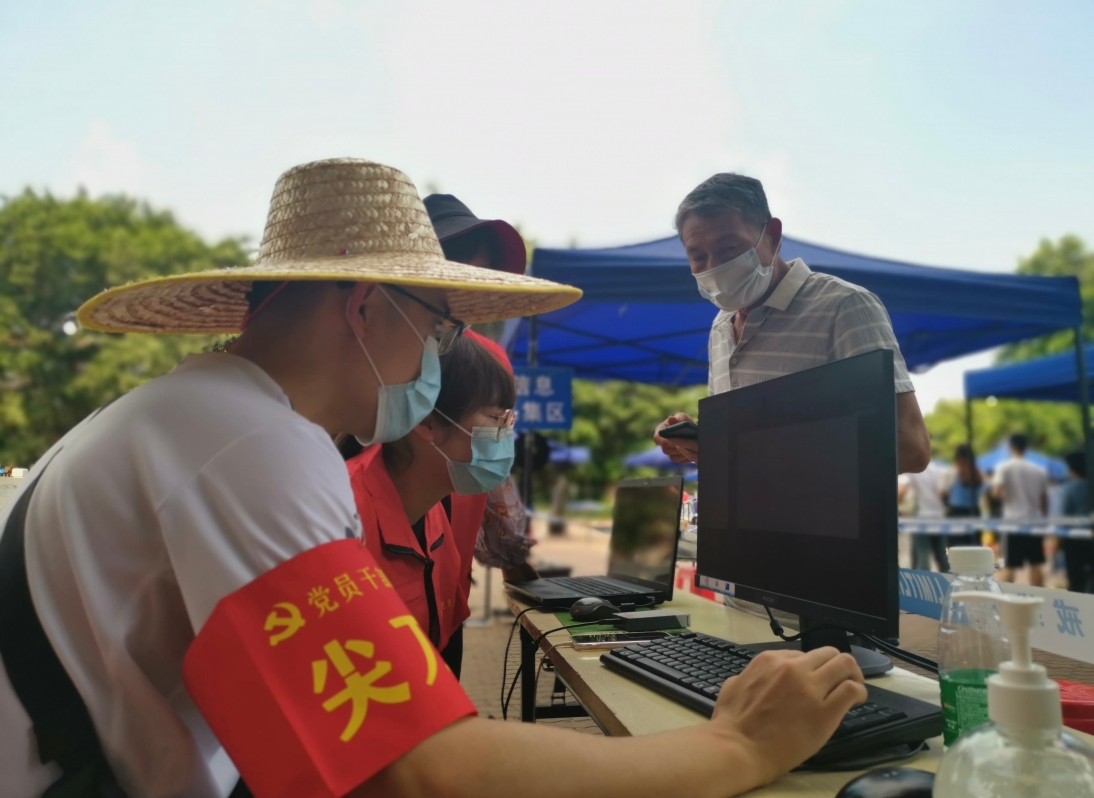 “阿叔,您要帮忙生成核酸码的话,请过来我这边,并出示一下您的身份证”“阿姨,请报一下您的身份证号码,我帮你查询”……
