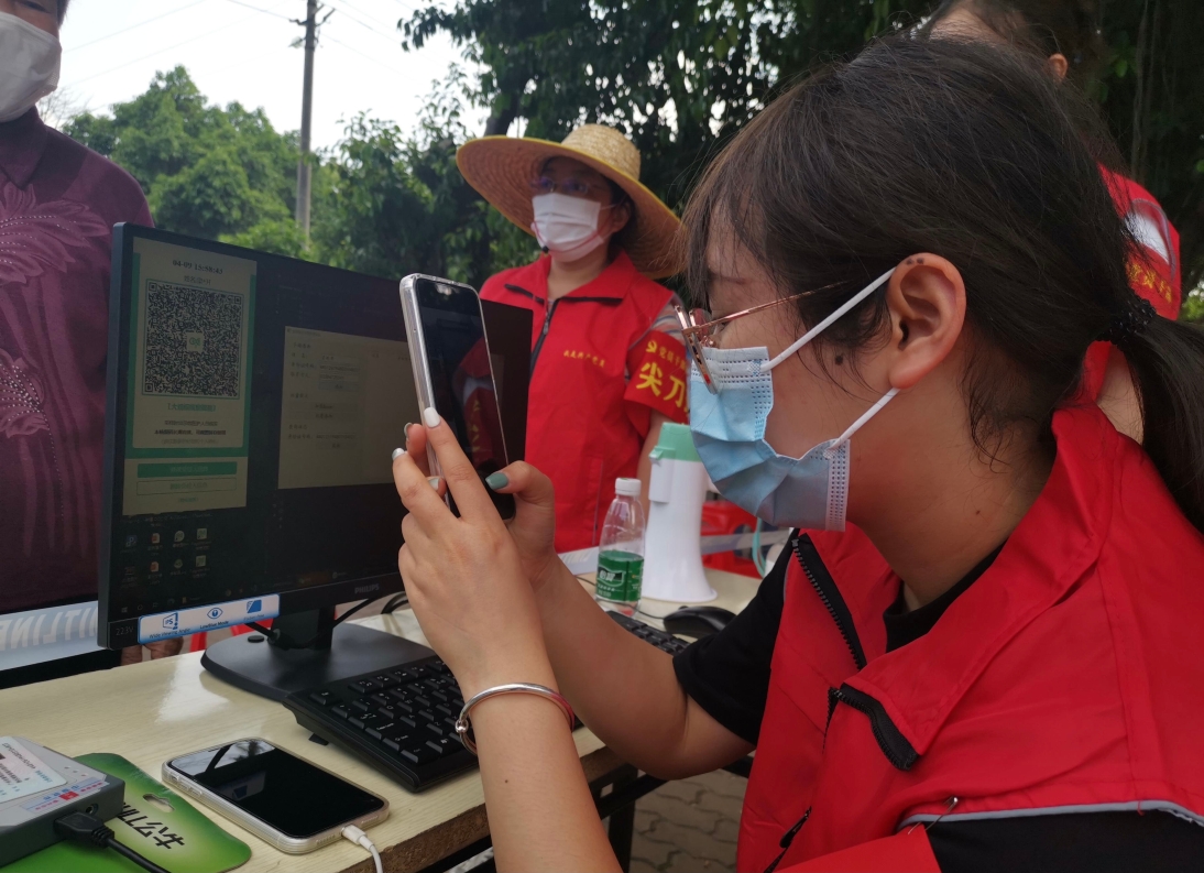 “因为很多老人家不会使用智能手机,有些老人甚至连手机都没有,所以每次做核酸检测都需安排大量人手帮助老人登记个人信息,费时费力之余,有些老人也会嫌麻烦。所以我就设计开发了一套自动输入信息小程序。”据张恒锐介绍,当接到新造镇要开展大规模核酸检测通知后,他就思考怎样发挥自己的专业优势,帮助老人快速进行核酸检测登记,所以就设计了这套“自动输入信息小程序”,通过利用以往核酸检测收集的数据生成表格。前来核酸检测的老人只需提供姓名、身份证号等信息,原来表格内的被采样人员信息便能够直接导入至“健康云”小程序的“个人检测登记”页面,自动生成核酸检测登记码,工作人员只需帮老人拍照保存下来就可以,整个过程相当便捷。