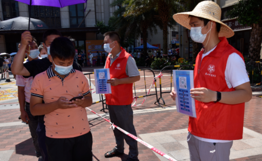 此外,为做好疫情防控工作,花都区辖内电影院于4月9日、10日暂停开放。其中,麦希影院的工作人员蔡卫明联系到花城街,提出自愿支援核酸检测工作,随后马上投入到志愿者工作中。据兰花社区负责人称,小明一直负责入口处的测温、扫码工作,他坚守本职,手持粤核酸码,协助群众顺利打开葵花码,有序参与全民核酸检测。