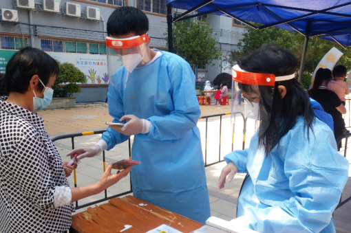 早上10时,核酸采样工作正式开始,现场工作人员对流程了然于心,排队、测温、扫码录入、采样,进出口引导、一米安全距离保持,每一个位置和流程都有工作人员引导,多项工作串联起来,形成了一条高效、安全、有序的检测链。广大居民有序排队,十人一组,积极配合,确保本次全员核酸检测工作规范、快速、高效。在现场不难看到这些场景,行走不便的老人家在家人用车推着,前来进行核酸检测,为全员核酸检测带好榜样。