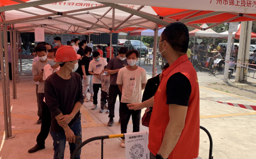 疫情就是命令,防控就是责任。接到任务的一瞬间,位于花都区炭步镇的医护人员迅速到位,在炎炎夏日,烈日当空的情况下,在密闭的防护服内,不惧困难,不怕辛苦。实际行动彰显了医护工作者的使命与担当。巾帼不让须眉,志愿有担当。巾帼志愿者有协助医务人员核酸检测扫码登记信息,有些则耐心地帮助没有智能手机的群众打印粤核酸3二维码,让群众有序排队等,顺利协助医务工作者完成核酸检测工作。