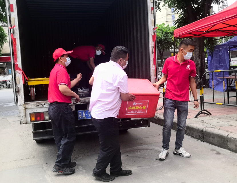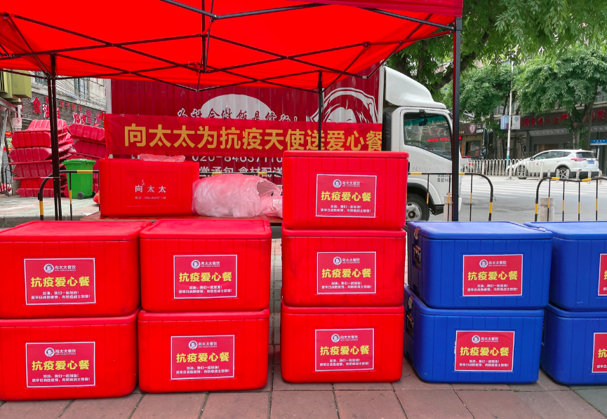 4月11日11时许,一辆装载了300份爱心午餐的小货车缓缓驶向从化区城郊街的封控区、管控区和防范区的物资储存点。原来,这是广州向太太餐饮公司为城郊街的防疫工作人员和志愿者送来的午餐。
