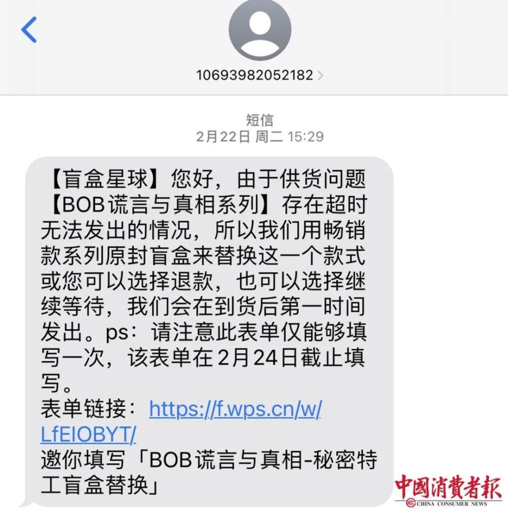 对此,盲盒星球开发公司浙江乐见网络科技有限公司法定代表人吴文东向《中国消费者报》记者表示:近期平台的确频繁收到投诉。受疫情影响,品牌商和供货商无法及时安排发货。平台认为,目前做退款处理是对用户最公平的处理方式。吴文东还表示,平台发货的先后顺序仅与库存数量相关,无论是热门款还是非热门款,只要有库存,都会立刻发货。受不同款式库存情况影响,平台会安排分批发货,确实有部分用户先收到了非热门款。