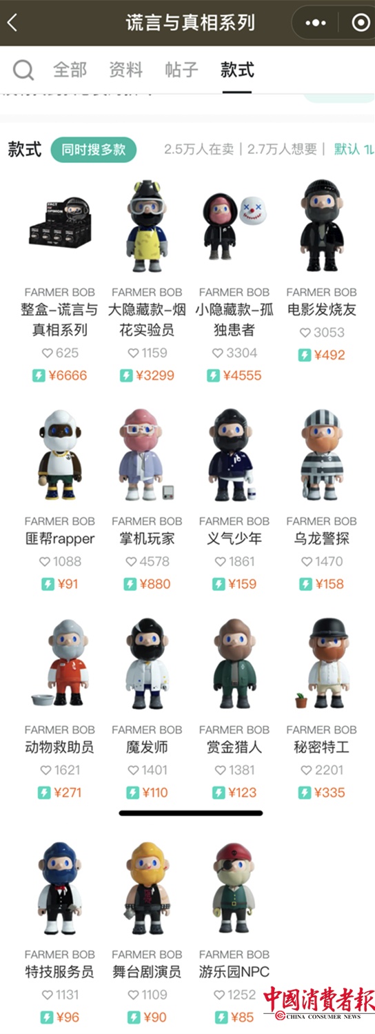 张先生在盲盒星球下单的“BOB谎言与真相”系列在潮玩族的售价截图。