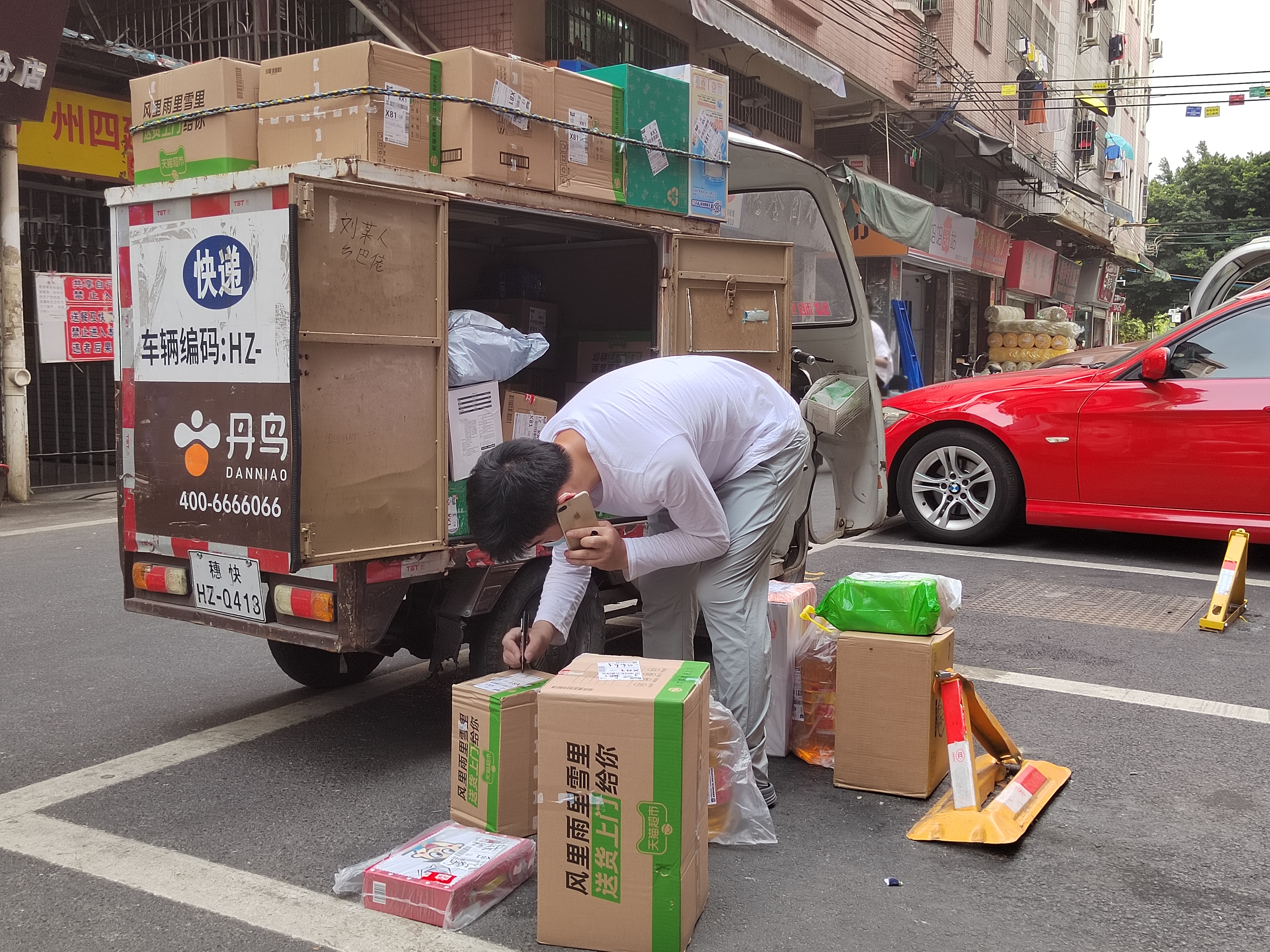 12日下午,记者走访防范区海珠区大塘村东胜新街四巷看到,有圆通的快递小哥和丹鸟的快递小哥正在联系收件人,告知他们前来领取快递。“这是今天他第二次来这里派送快递了,加上这批次,今天估计要送100多个快递。”丹鸟的快递小哥告诉记者,目前这边防范区的快递服务是正常的。前来取快递的市民陈先生表示,这是他刚买的一桶油,下单到收件还是挺快的。