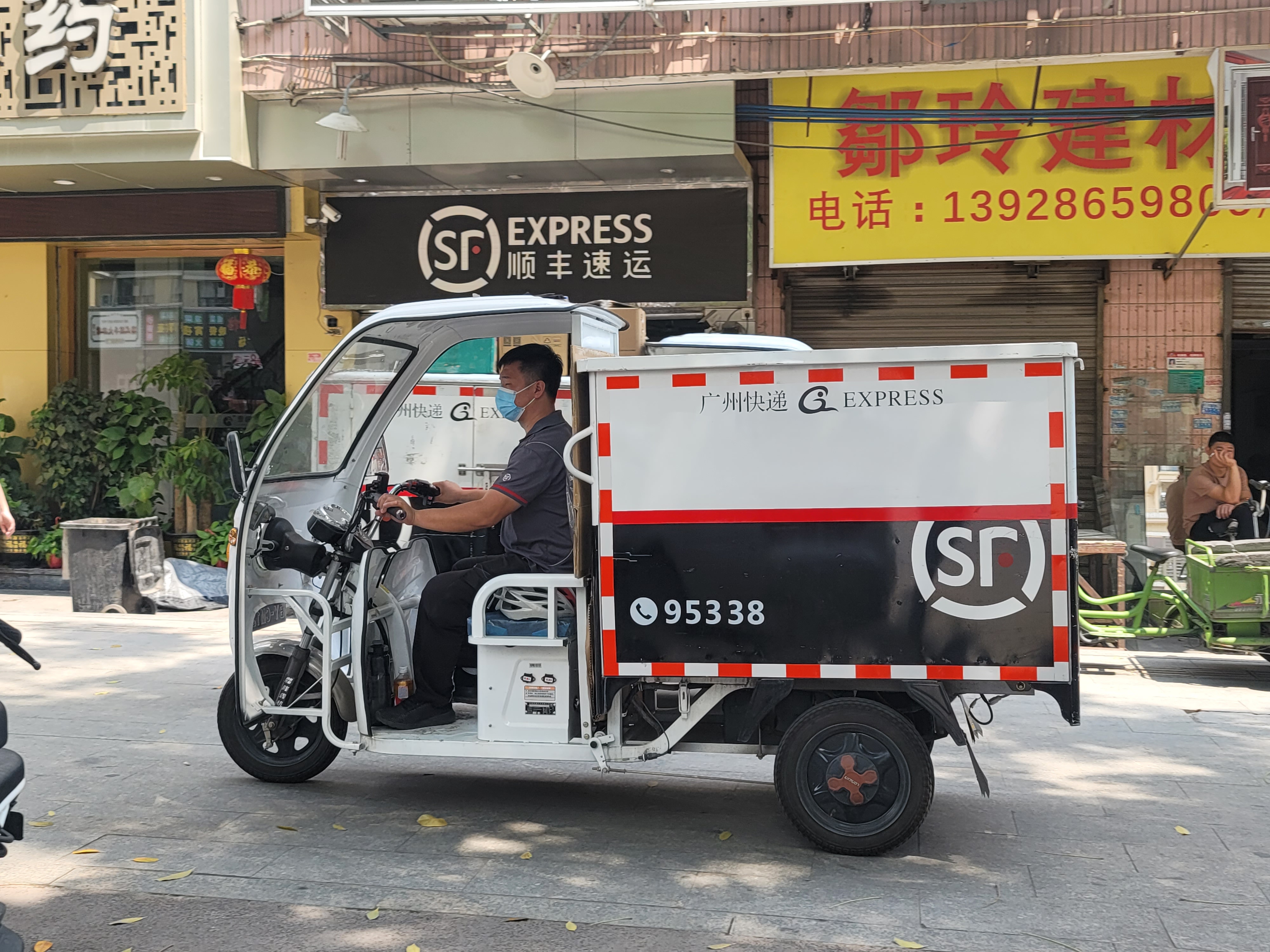 当日中午,广州日报全媒体记者走访防范区白云区金沙洲一小区门前快递柜,有少量市民正在取快递。快递小哥正将当天新运来的快递依次放入自提柜。京东快递小哥告诉记者:“目前快递运送是正常的,只要能寄出去,目前这边都能收得到。”中通快递小哥也表示,目前防范区快递寄收正常。不远处的顺丰快递寄收点,快递小哥正将快件分装上车,运往附近各小区。