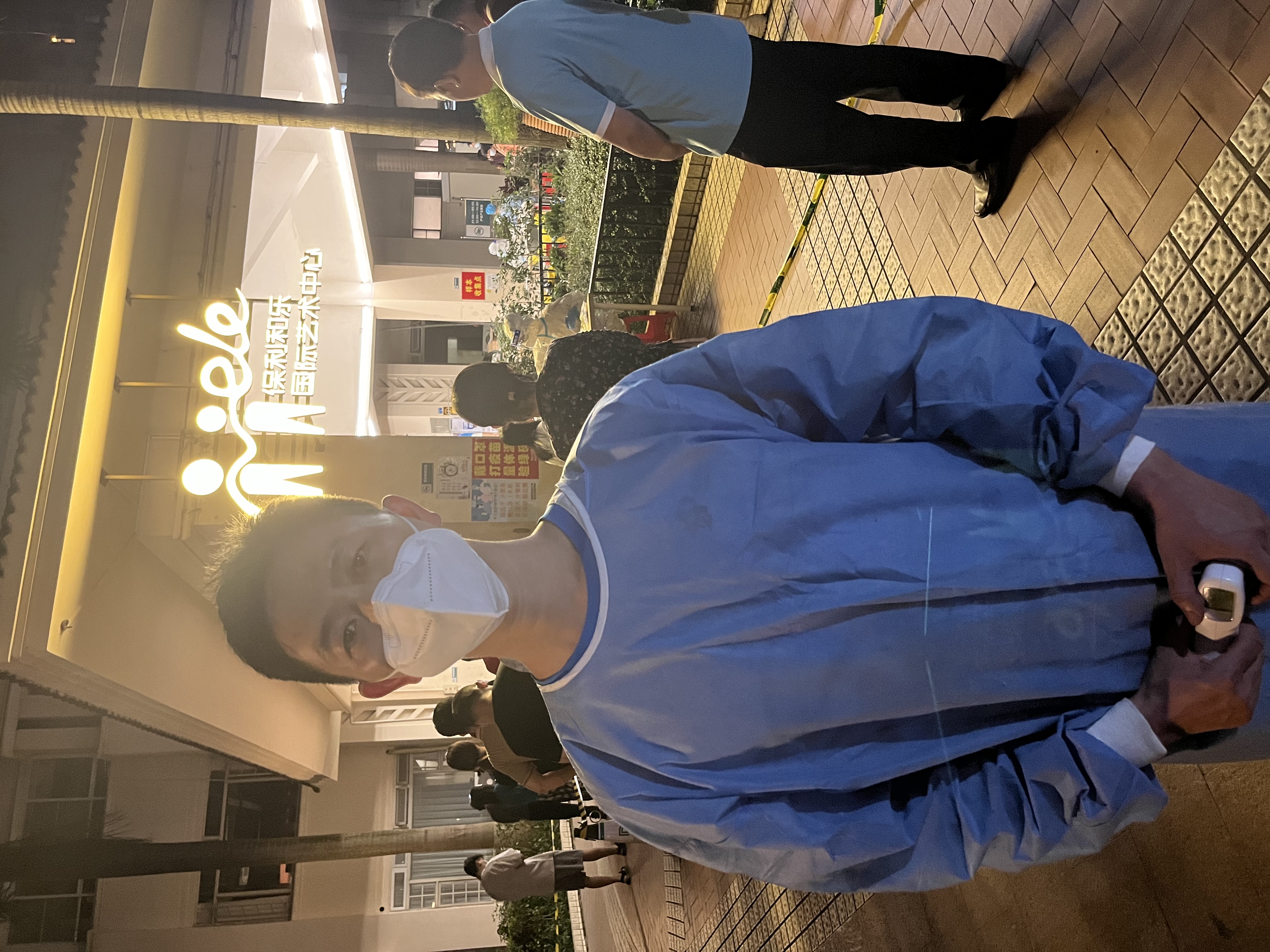 核酸检测第一天,宋冠锋一直工作到凌晨2点,等到医务人员都撤离了,宋冠锋还不能休息,他还要和讨居委会工作人员商讨第二天的工作安排,第二天早上7点,他又准时出现在核酸检测现场。他说,核酸检测开始前有大量琐细的工作需要做,比如,做场地整理,他每天对当天天气情况要有掌握,如果下雨,就要准备在户外搭棚,准备灯具,如果是室内,就要考虑场地通风,要拿来几台风扇降温,还要考虑出入口各设置在哪里。这些工作,事无巨细,稍微有一点考虑不周到,核酸检测就不能顺利完成。
