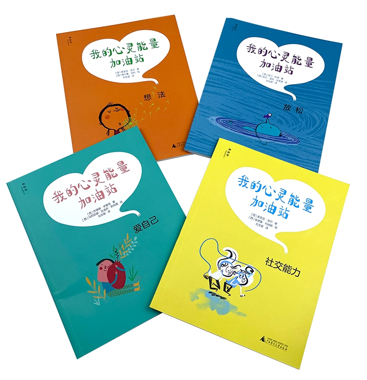 这是一套资深心理学专家、瑜伽教师、专业童书插画师写给孩子的心理疗愈图画书,分为《想法》《放松》《爱自己》《社交能力》4册,主要服务“遇到烦心事儿的孩子”,通过讲解一些实用的小技巧来帮他们认识、理解自己的错误想法,让他们学会放松并集中精神专注自我,让他们多爱自己一些,同时懂得在群体中保持适当的社交分寸,从而获得他人的尊重,建立强大的内心世界,拥有更好的生活质量。