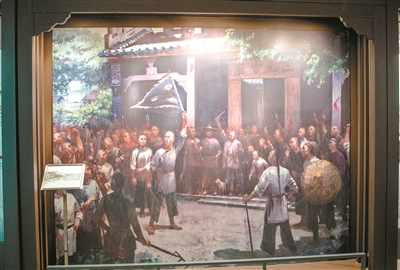 三元里人民抗英斗争纪念馆展出的画作,反映了103乡义勇在三元里古庙会盟的场景。