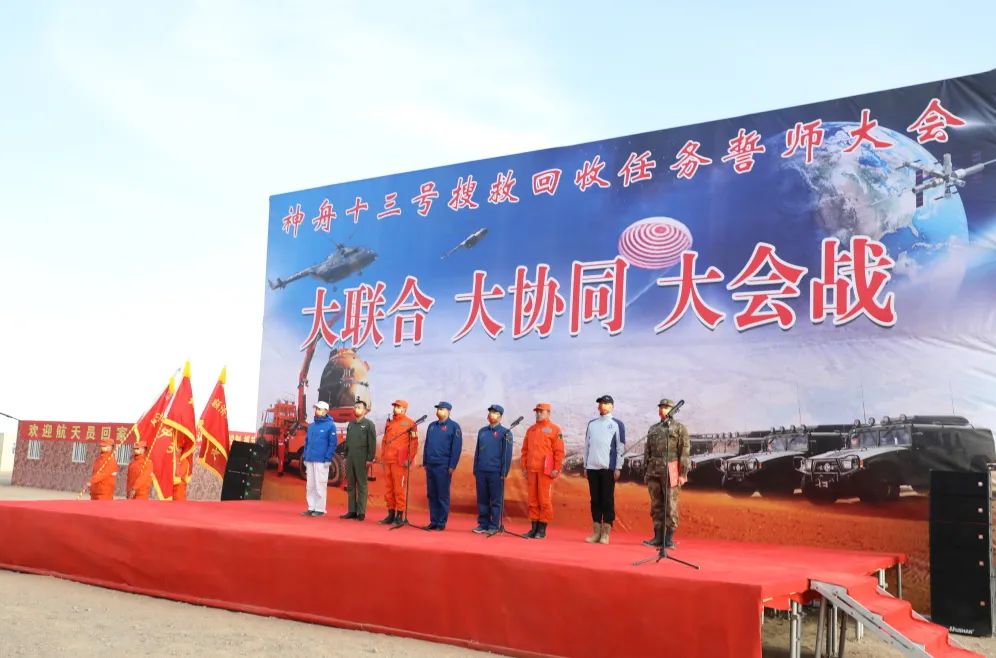 “这次誓师大会,时长不足20分钟,与阵地集结相结合,与演练训练融为一体,不仅为我们搜救队员灌注了决胜信心,也激励我们以更加昂扬的斗志,向神舟十三号搜救回收任务发起最后冲锋,让胜利的旗帜在东风着陆场高高飘扬。”着陆场区指挥部阵地指挥组临时党委书记侯万禄介绍说。