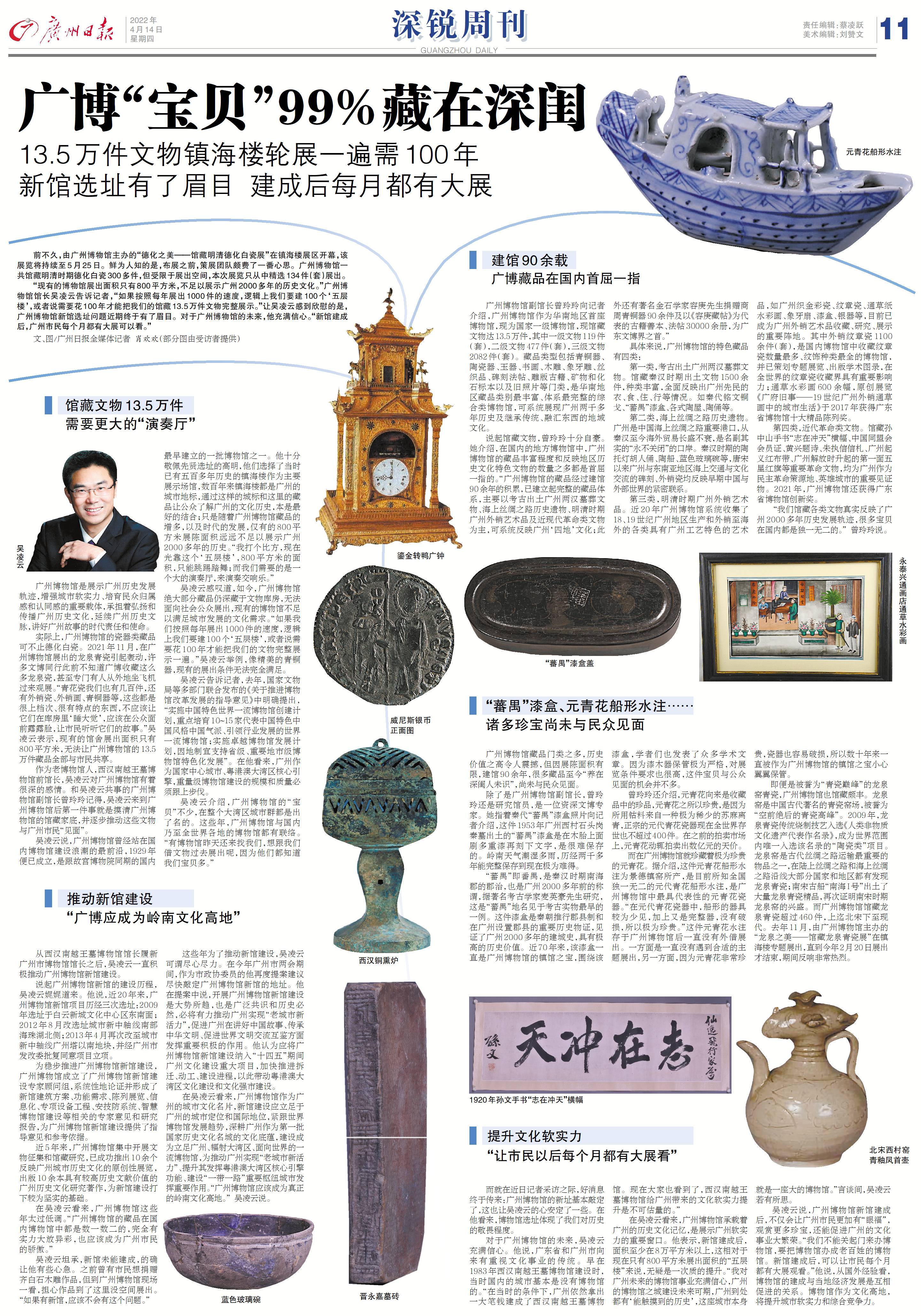 在吴凌云看来,广州博物馆这些年太过低调。“广州博物馆的藏品在国内博物馆中都是数一数二的,完全有实力大放异彩,也应该成为广州市民的骄傲。”