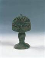 说明:出土时炉内残留炭粒状香料。广州两汉墓出土的随葬品中常有熏炉,反映熏香已成为当时贵族的生活风尚。香料由海外输入,反映了广州海路通商贸易的兴盛。