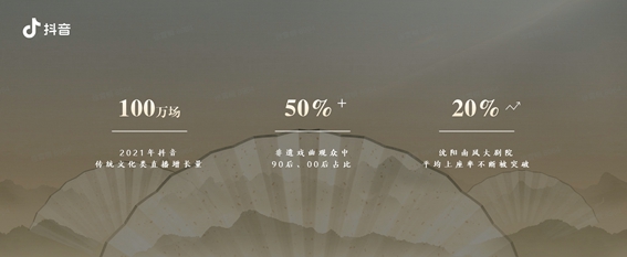 数据显示,2021年,抖音传统文化类直播比上年增长了100万场。过去一年,戏曲直播开播场次超过80万,平均每场观看超过3200人次。以平均人数来说,每一场戏曲直播都相当于一场中型演出。