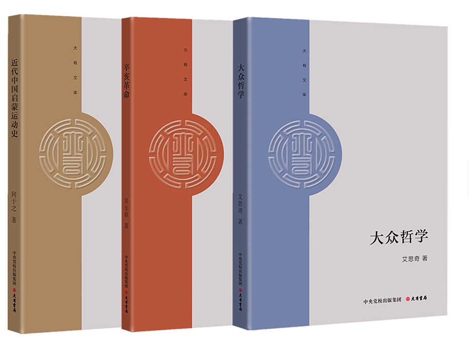 近日,中央党校出版集团下属大有书局(北京)有限公司(以下简称大有书局)首次推出的“大有文库”丛书,分为《大众哲学》《辛亥革命》和《近代中国启蒙运动史》3册,内容涉及政治、历史、思想文化诸领域,涵盖专著、文集、传记等题材,真实记录了老一辈革命家、哲学家、思想家们的思考与探索、理想与愿景,具有重要的史料价值和珍贵的版本价值。