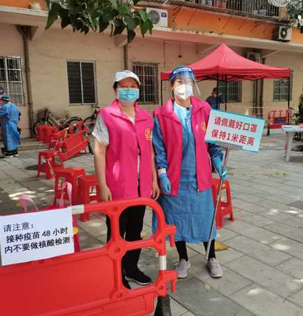 近日,越秀区建设街妇联积极响应建设街党工委的号令,动员全街166名执委、上千人次巾帼志愿者参与到社区的疫情防控工作中去,协助社区核酸检测、疫苗接种、上门排查、数据核查等工作,为筑牢疫情防控防线贡献巾帼力量。