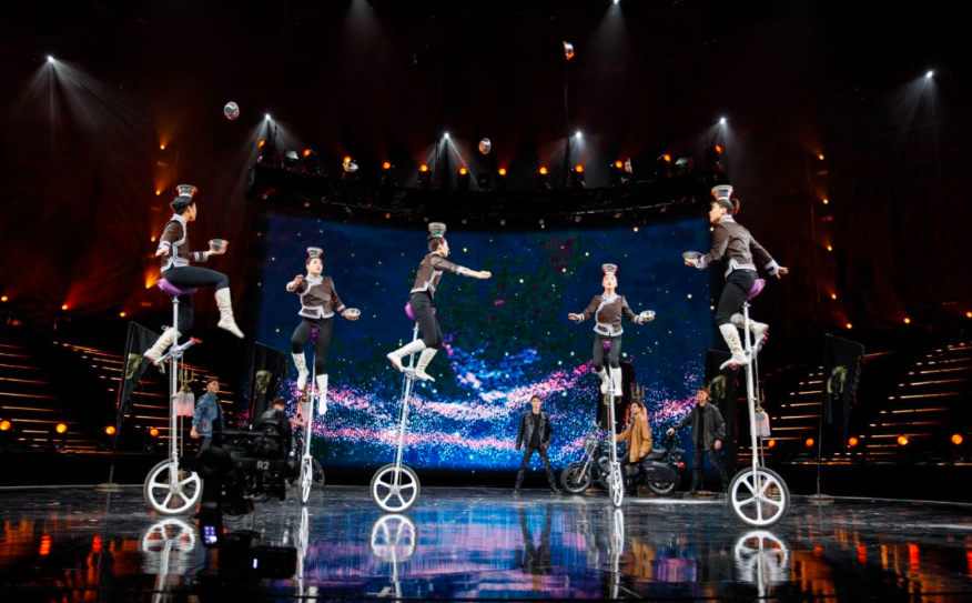 上轮比赛,来自内蒙古艺术剧院杂技团的“踢碗姐妹淘”组合,带来极具中国民族风情的高车踢碗表演。本期,“踢碗姐妹淘”以《摇滚阿依嘎》骑着独轮车花式踢碗,还加入内蒙古金属摇滚乐和非遗安代舞。