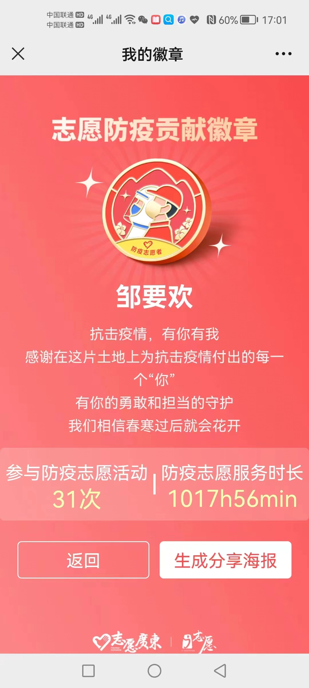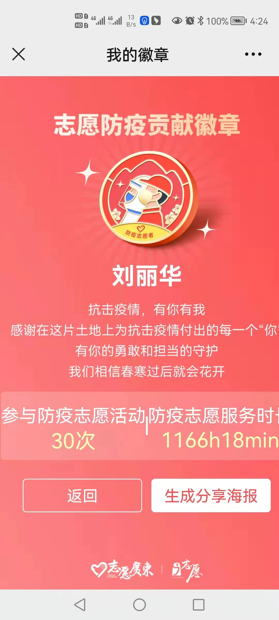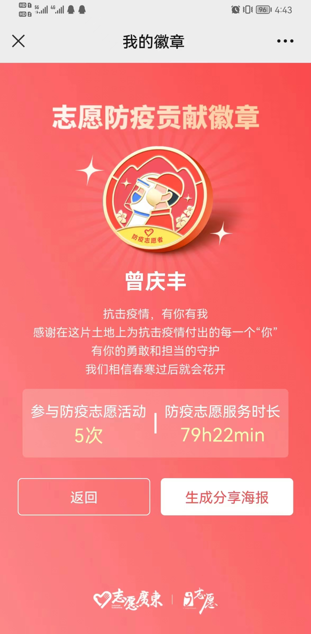 感谢为抗击疫情付出的每一个你,沙面驿站志愿者也都获得了专属的徽章。