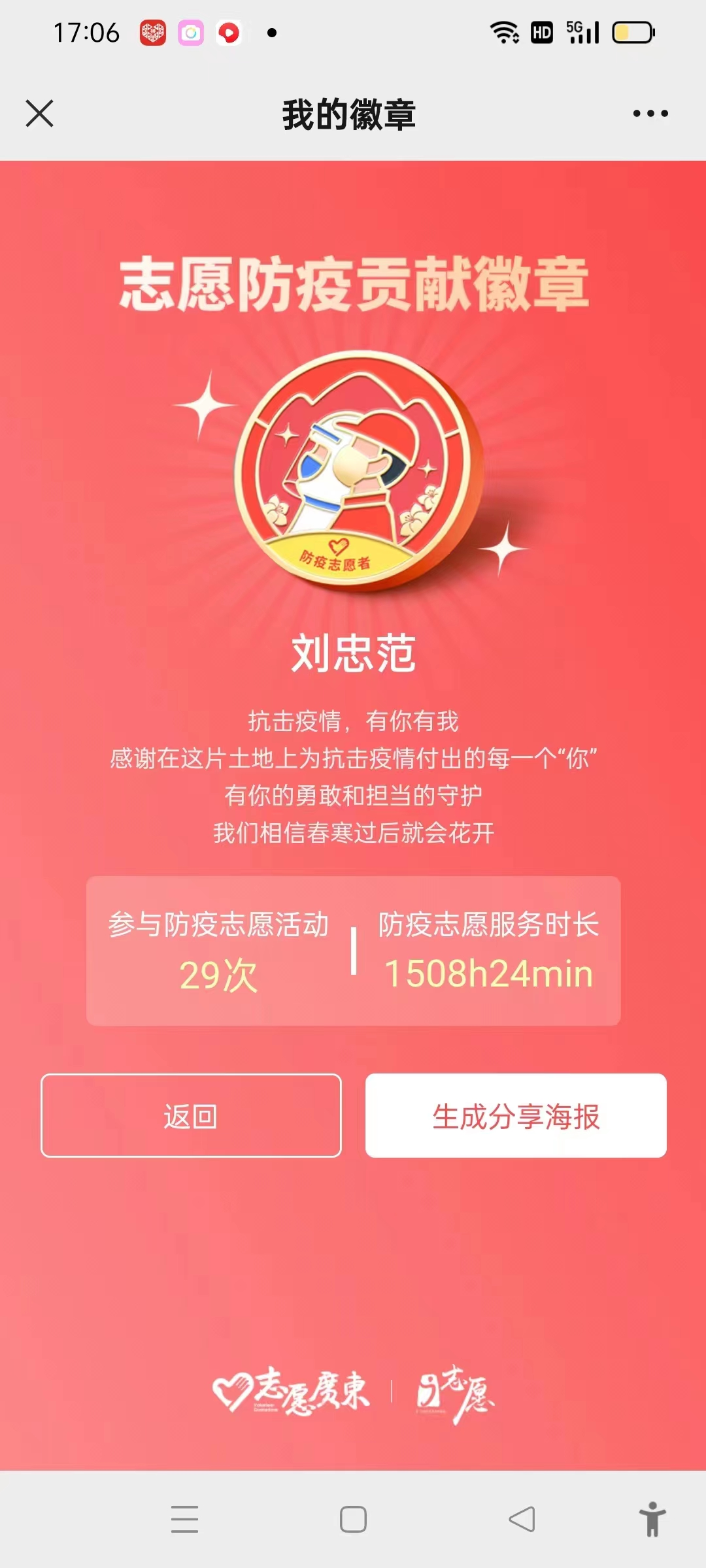 参与过防疫志愿并获得时长的志愿者,可以通过“i志愿”微信公众号(点击菜单栏【志愿者】-【志愿活动】-【我的】)或进入粤省事“志愿公益专区”,可查看领取“志愿防疫贡献徽章”。