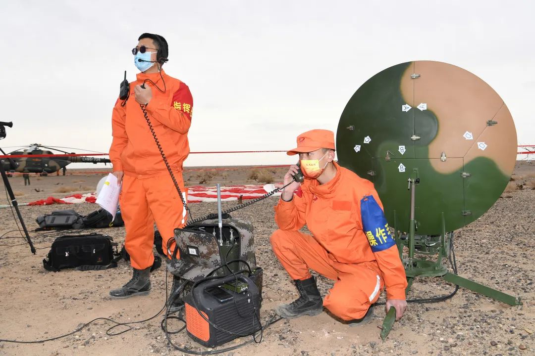 一时间,空中、地面搜索回收分队像开弓的利剑,全速向着陆点收拢,沉寂的戈壁滩引擎轰鸣、尘土漫天。