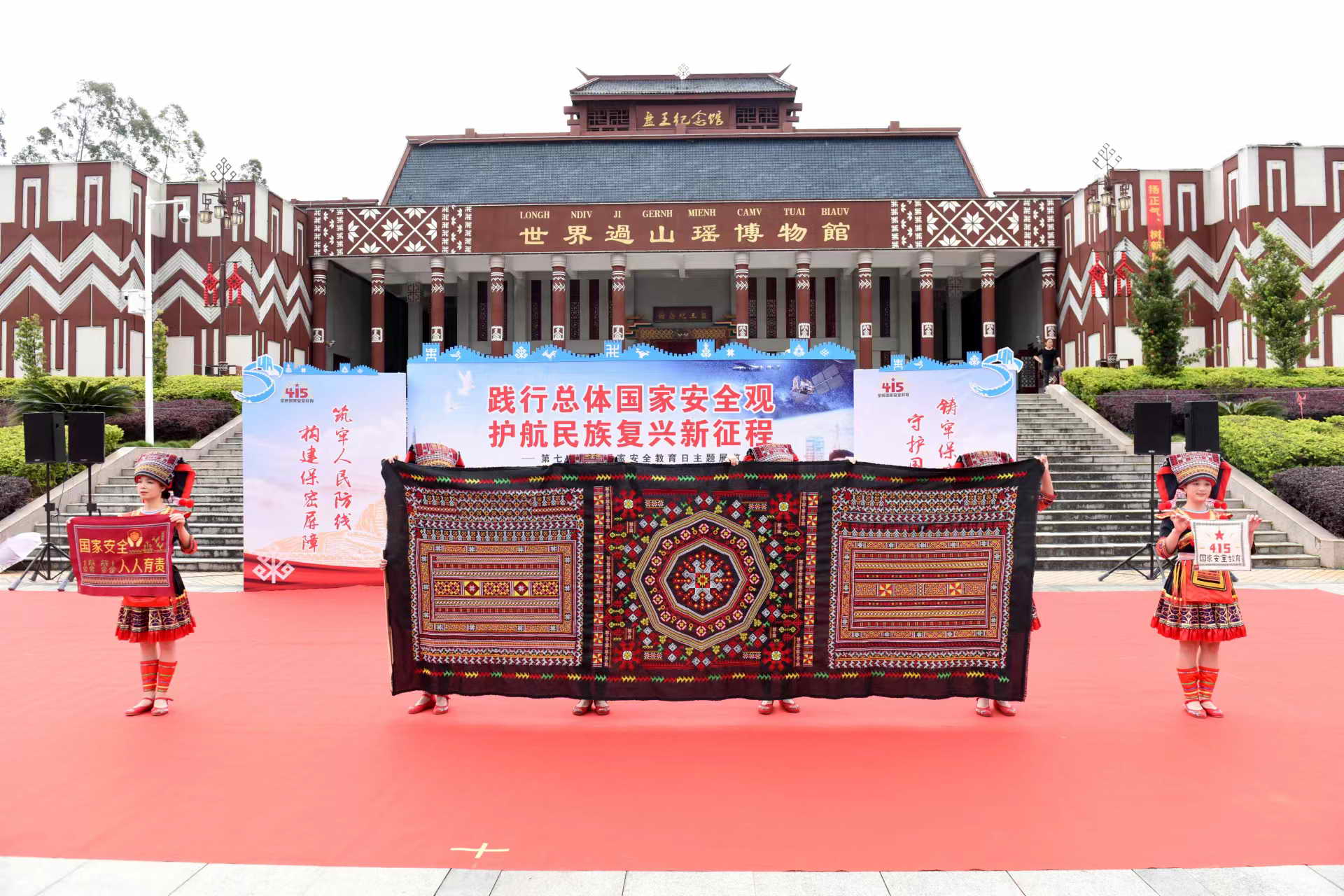 据了解,活动着重体现了“三个突出”:一是突出主题宣传,融入民族特色。乳源瑶族自治县的瑶绣反面刺绣技艺、瑶族歌舞都具有浓厚民族特色,通过瑶族姑娘载歌载舞体现瑶乡幸福生活,在刺绣作品中突出政治安全、民族团结等国家安全文化元素,让广大群众眼前一亮,寓教于乐。同时,还编排了群口快板,用脍炙人口的顺口溜把国家安全观唱进人民群众心里。”