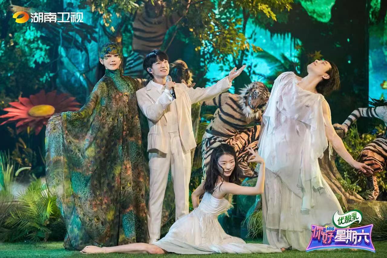 今晚,在湖南卫视《你好,星期六》与杨丽萍、周深、刘耀文、唐九洲、孙天宇一起涨知识!节目中,周深杨丽萍同台演绎绝美大秀,呼吁保护生物的多样性。唐九洲、孙天宇感受汉字的魅力。刘耀文花样跳绳燃爆现场。
