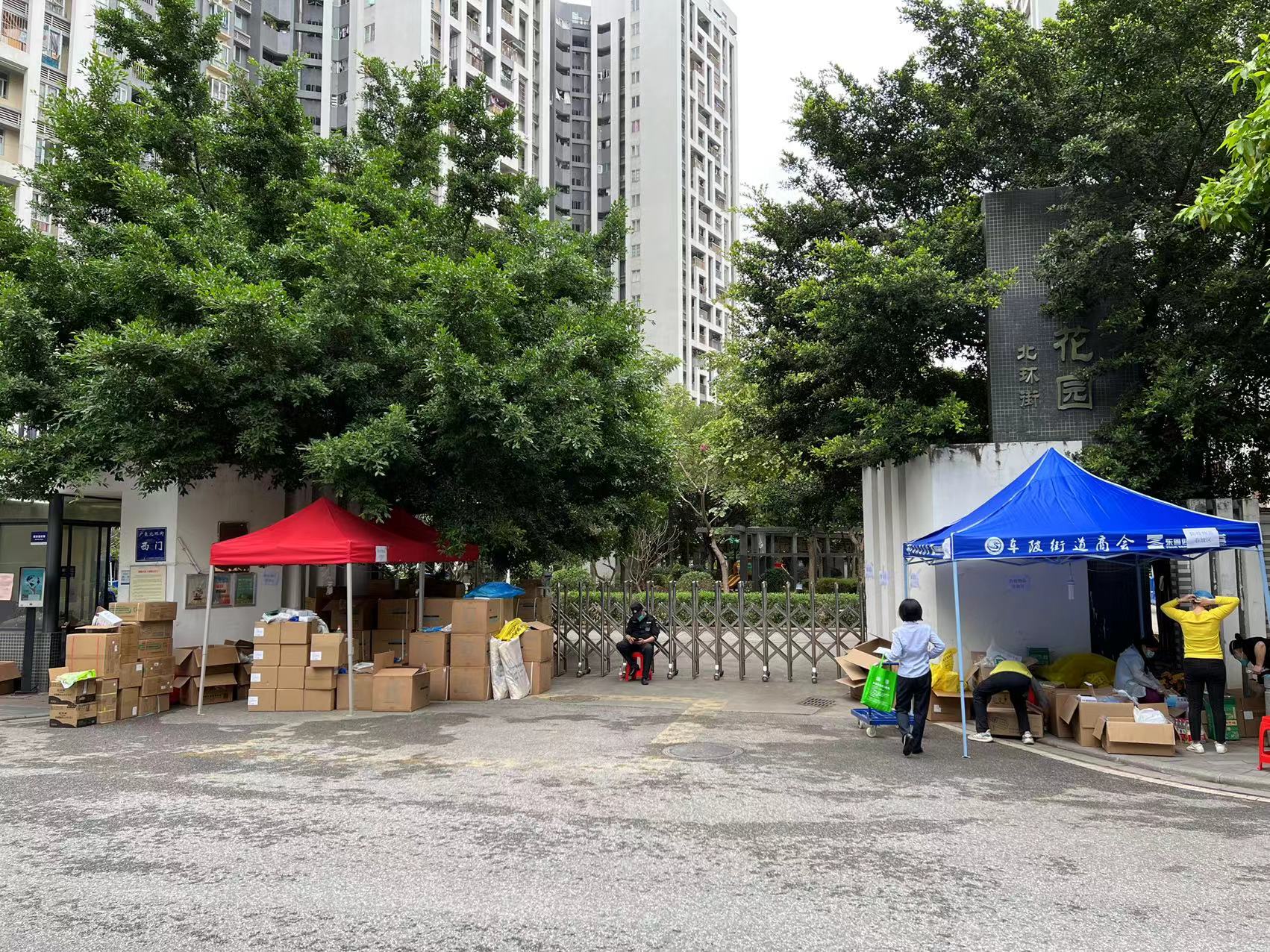 记者在现场看到,管控区域内的居民对大米、新鲜蔬菜、纸巾等需求量比较大,不时也有居民的家人朋友为他们送来物资。为了方便统一管理,管控区域仅设置了广氮北环街西门一个入口,物资只能从此入口送入。