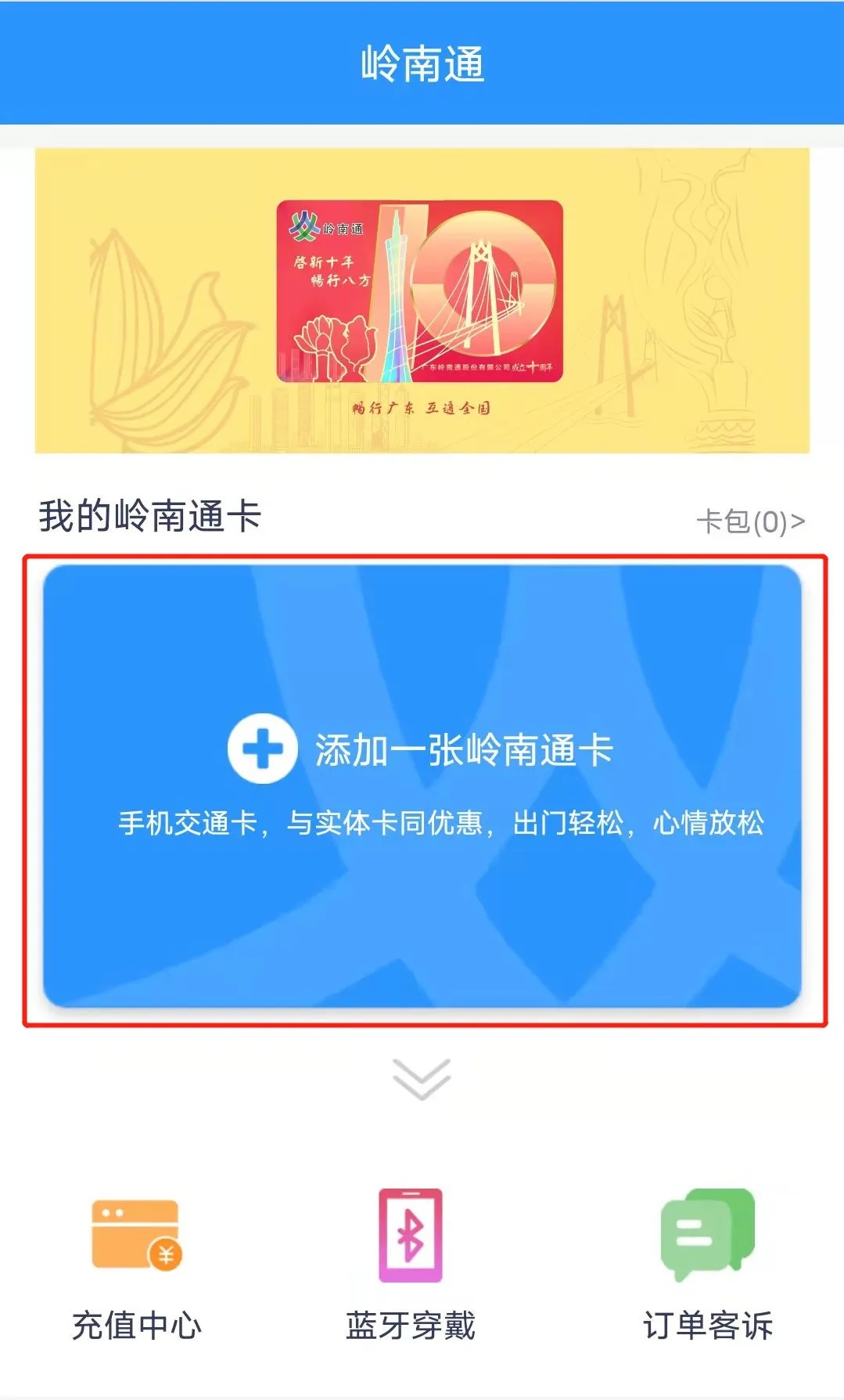 (一)手机开卡:下载打开“岭南通APP”(或打开手机钱包,选择交通卡功能),打开NFC功能,在首页点击“添加一张岭南通卡”,阅读并同意“开卡协议”,选择常用城市(广州),按提示选择充值金额,页面显示开卡成功,即可使用岭南通虚拟卡。