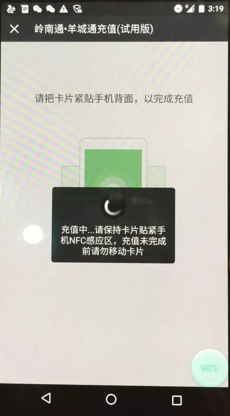 (2)通过安卓NFC手机在线充值写卡(可通过羊城通APP或羊城通微信公众号在线NFC充值写卡)