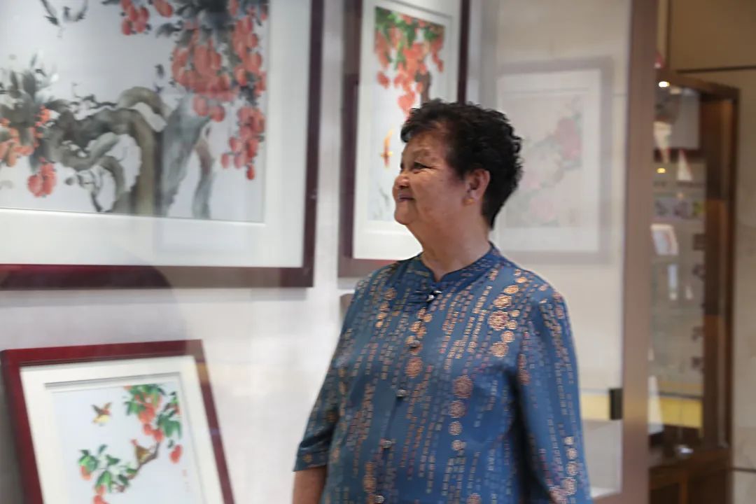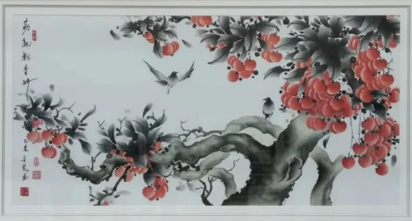 走进陆柳卿老师的工作室,小编就被挂在墙上的作品吸引了。栩栩如生的荔枝、木棉花,色泽光艳、自然逼真。