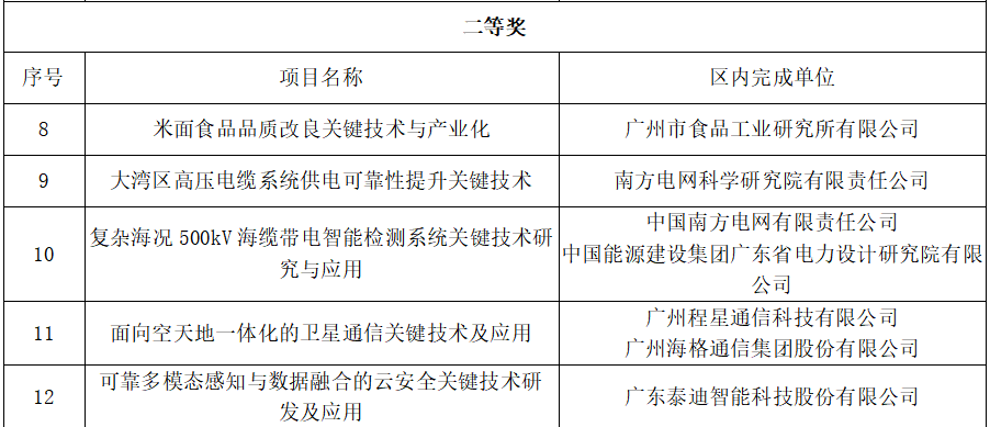 广州市食品工业研究所有限公司等12家单位完成的项目荣获科技进步奖二等奖,全省共104项,我区占11.5%。