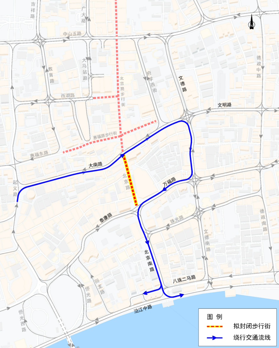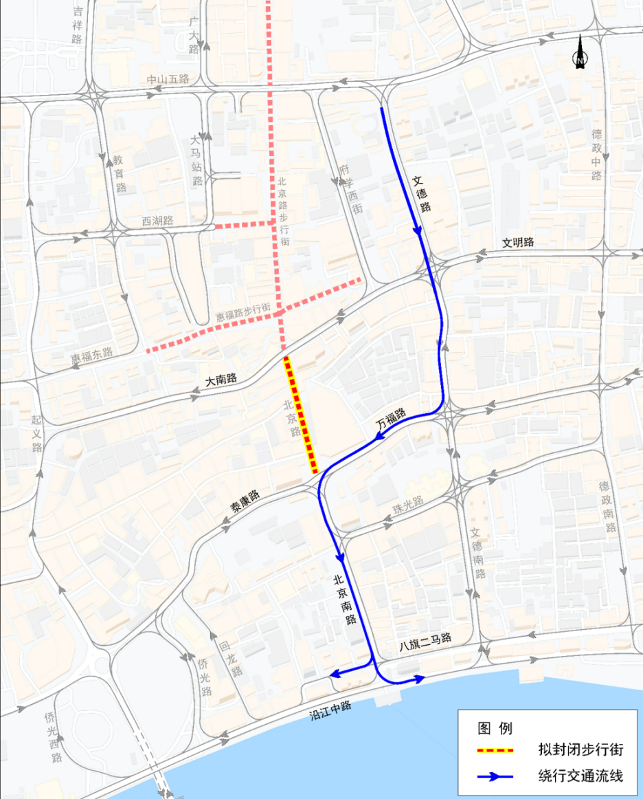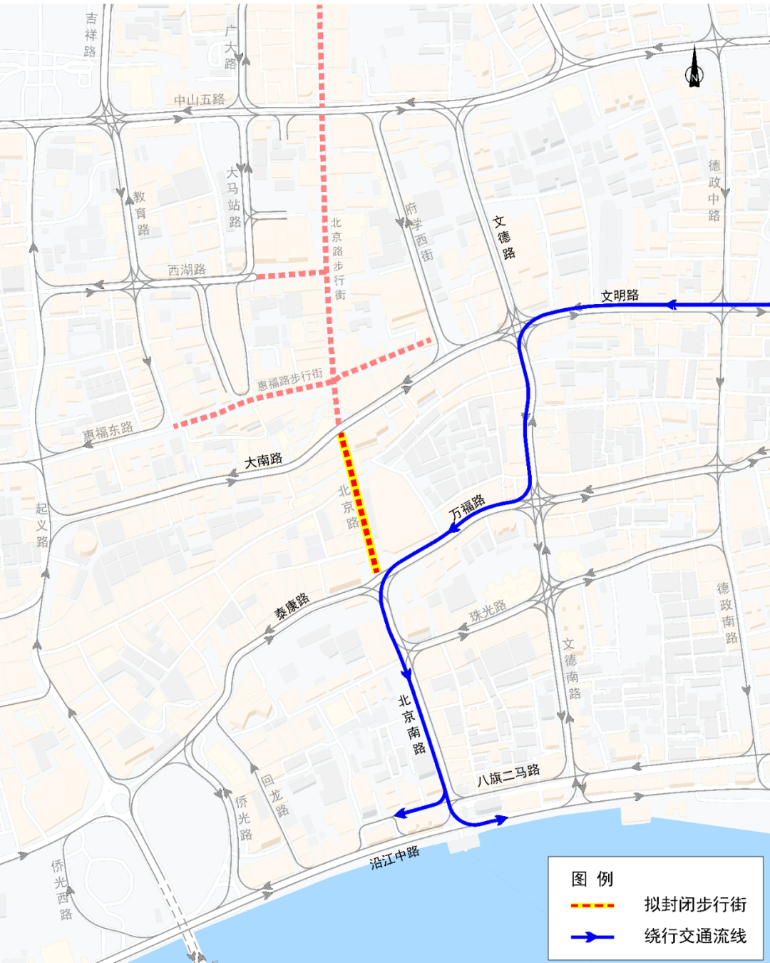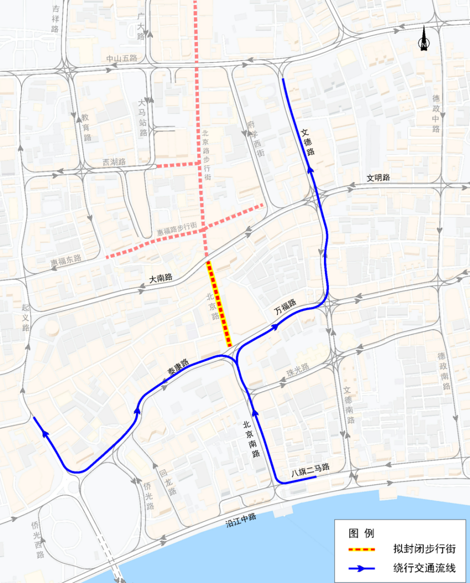 从北京南路方向往北的机动车绕行路径(来源:越秀区委宣传部)