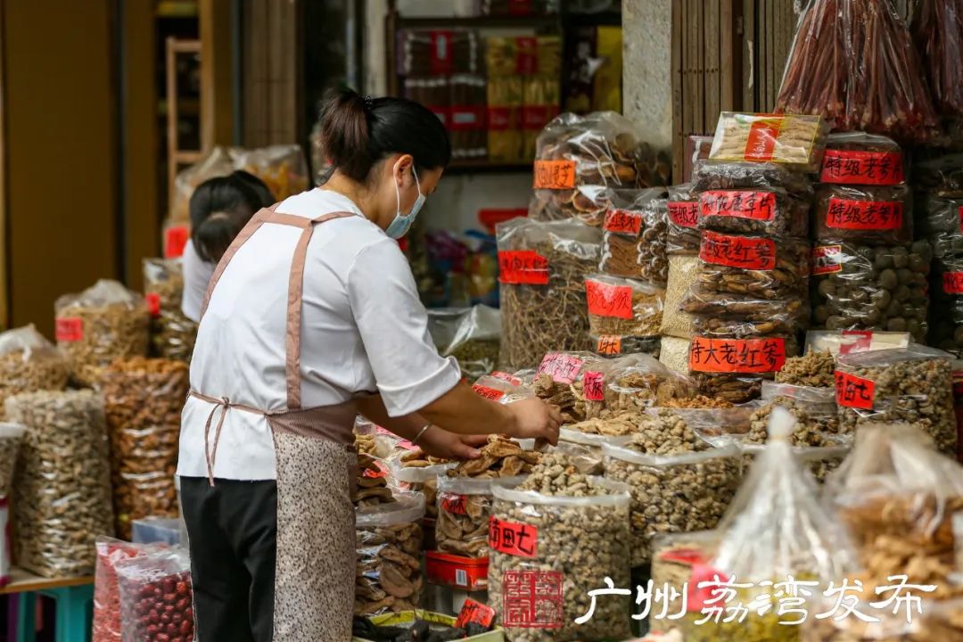 街巷中,挑选药材的、运货的、闲聊的市民,成了荔湾一道独特的风景线。