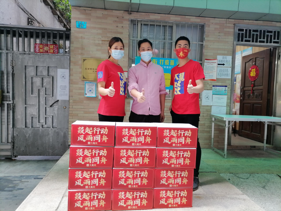 北京路步行街的餐饮单位为流水井居委送上十二箱矿泉水,表达对防疫工作的支持。
