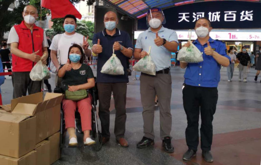 在天河城广场核酸检测点,爱心企业送来了350个香甜软糯的热粽子,慰问防疫一线工作人员。