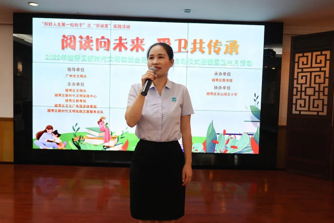 4月16日,由越秀区文明办、越秀区新时代文明实践中心、越秀区教育局、越秀区文化广电旅游体育局、越秀区图书馆联合主办的“阅读向未来 爱卫共传承”——越秀区新时代文明实践全民阅读暨爱国卫生月活动正式启动。
